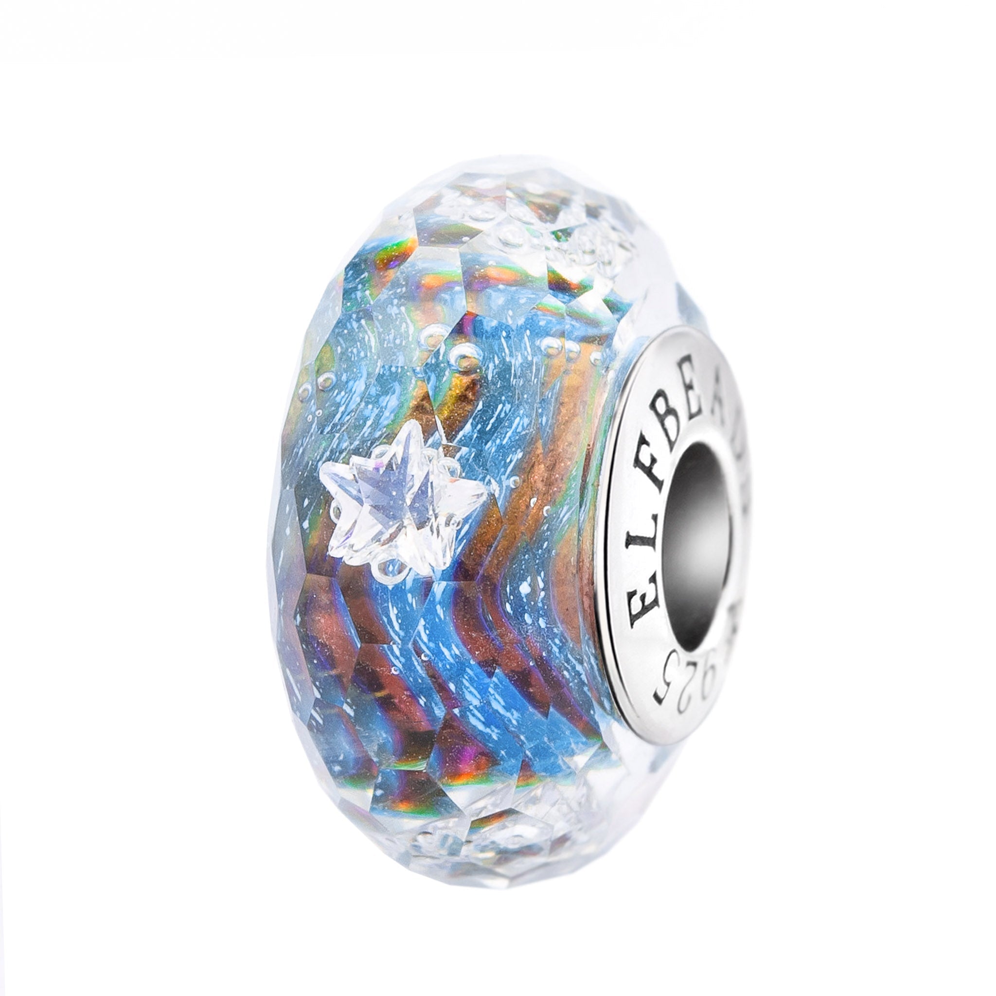 Our glass beads are crafted from the highest quality glass, sourced from all over the world. Each bead has a silver core with a 4.7mm hole, compatible with Elfbeads, Pandora, and Trollbeads bracelets. The core is marked with the E925 hallmark, representing Elfbeads and sterling silver 925.