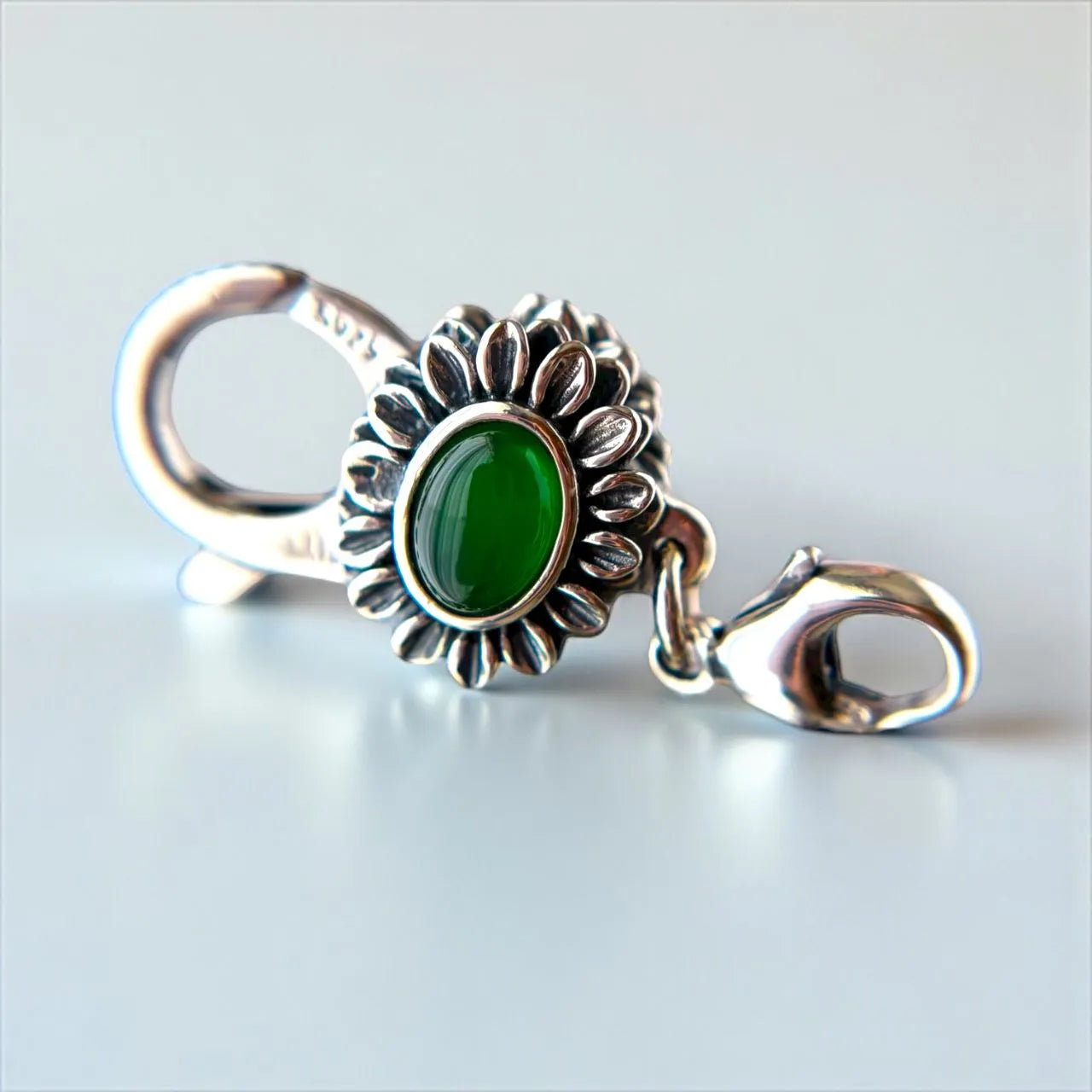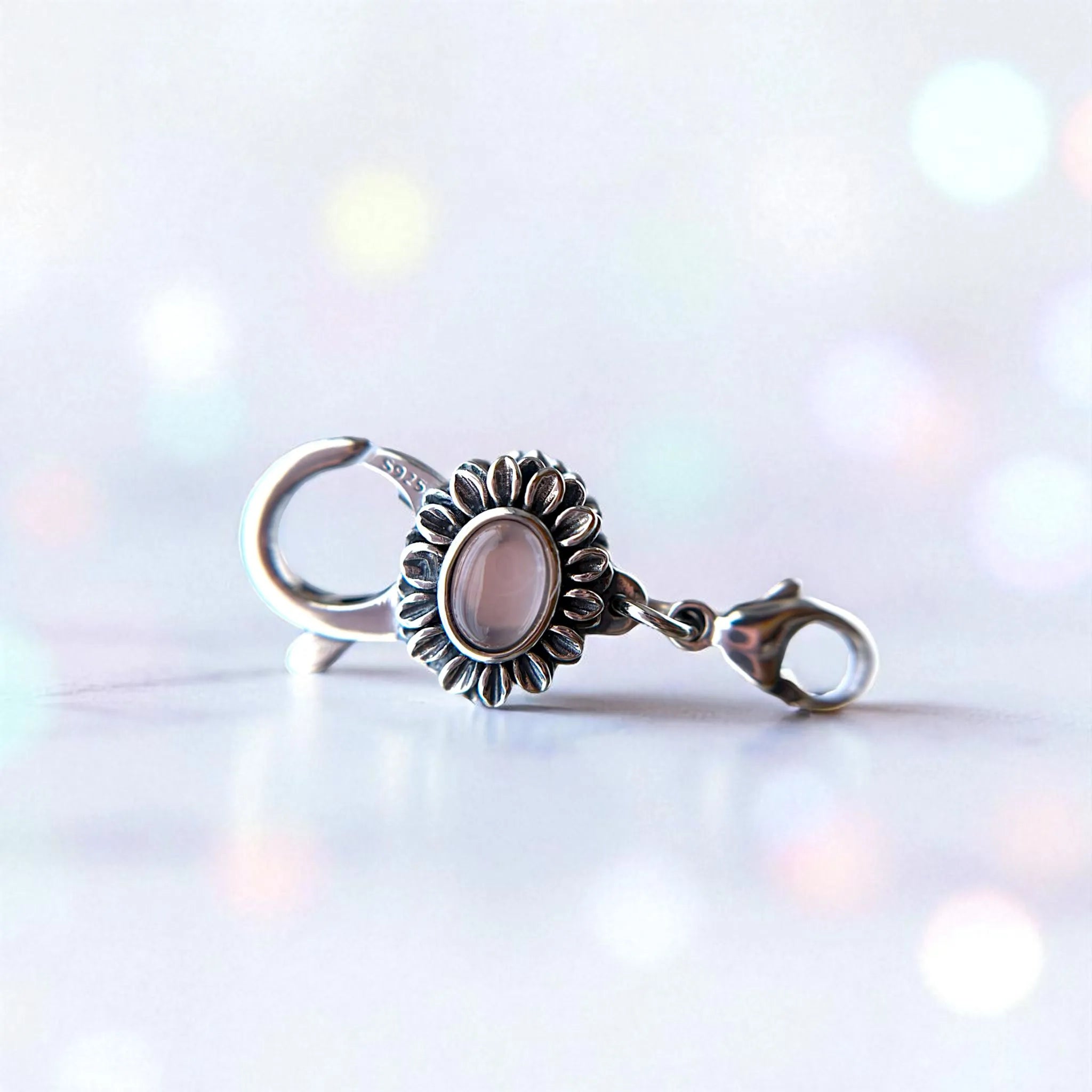 Complete your bracelet with a refined match. The Serenade Lock carries the Serenade flower on both faces and sets a genuine chalcedony cabochon at the center. Available in Pink or Green Chalcedony, it pairs seamlessly with the Serenade Bead and Stopper while keeping your bracelet secure.