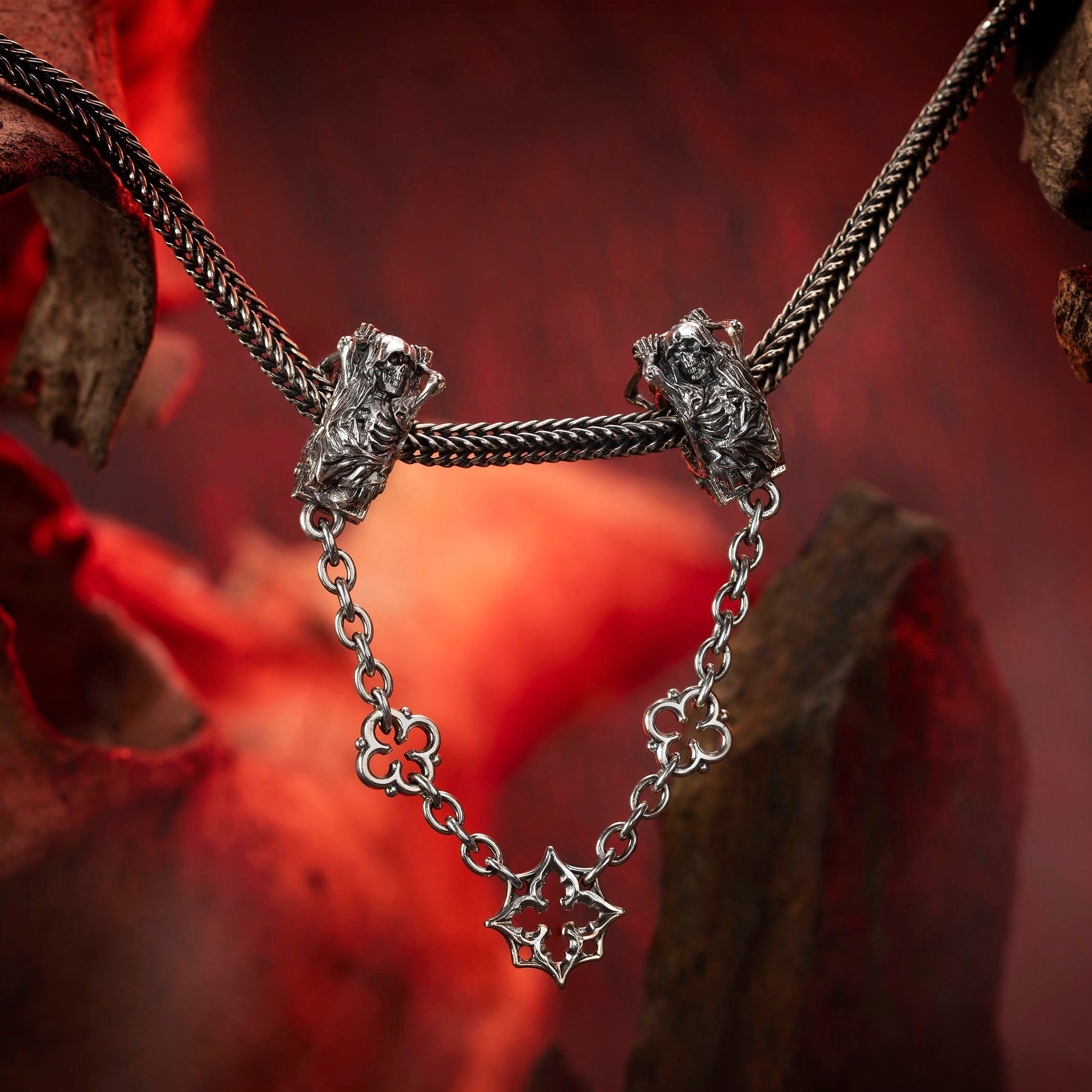 Bound to the arches by sacred duty, these skeletal sentinels brace the collapsing columns - protecting what remains of the sacred within. Every link of the chain is part of the seal. Every pattern, a prayer.